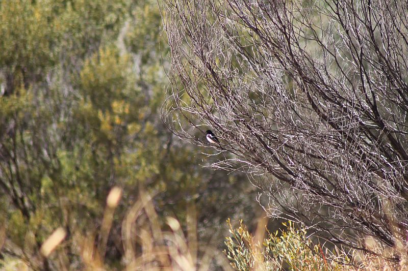 There was a Willie Wagtail nearby also and I was thinking how wonderful it would be if they flew close to one another so I could take a photo that demonstrated the difference between these two small black and white birds. They obliged my wishes.