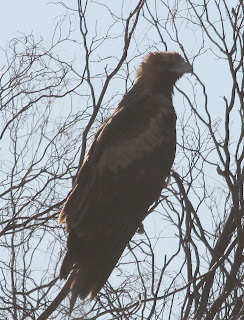 And finally, one of the most awe-inspiring birds in this group is the Wedge-tailed Eagle just because of its size. The one in these photos is an immature WTE that was sitting in a tree on the side of the road with the sun behind: